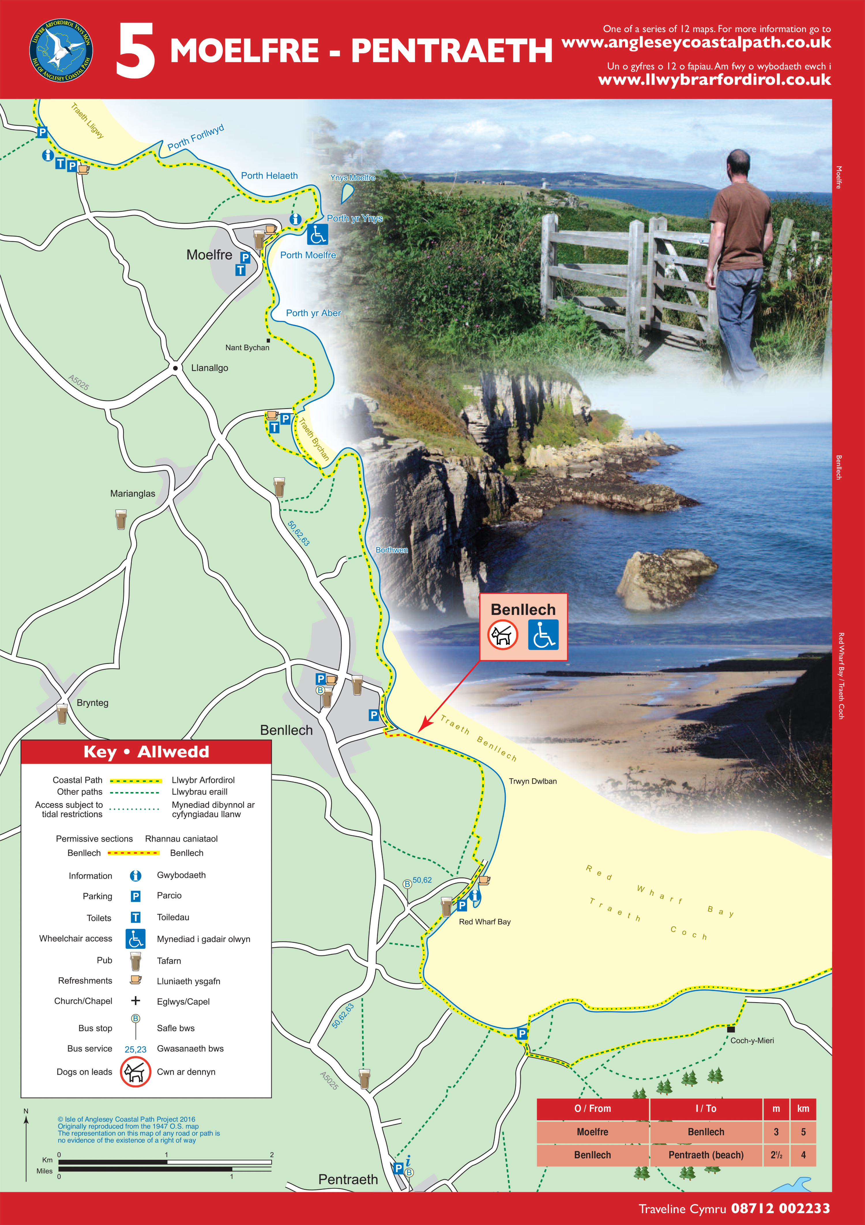 Disgrifiad llwybr a lawrlwythiad map ar gyfer rhan 5 o Lwybr Arfordirol Ynys Môn.