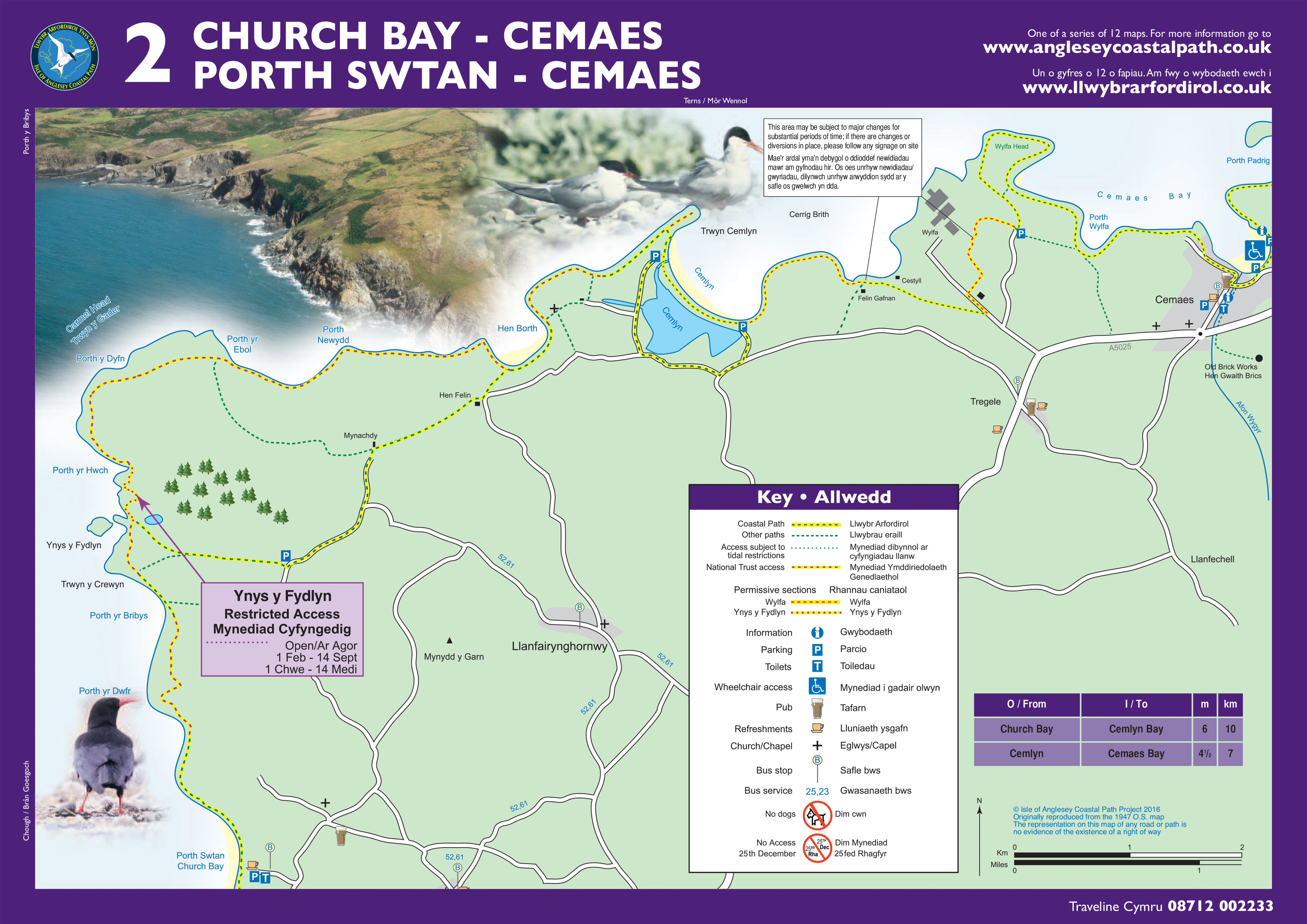 Disgrifiad llwybr a lawrlwythiad map ar gyfer rhan 2 o Lwybr Arfordirol Ynys Môn.